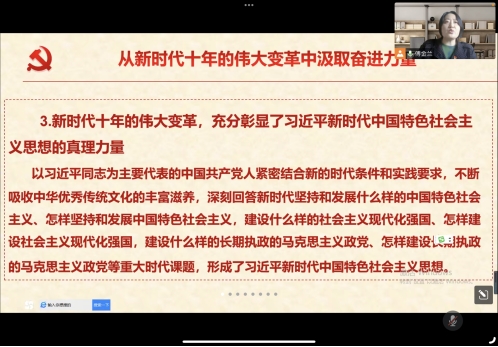 按照公司对党的二十大精神宣讲要求,11月30日,公司经理傅金兰以“盛景见证非凡,书写精彩华章”为题,对党的二十大精神进行了系统宣讲和深入解读,公司师生通过线上线下的方式参加