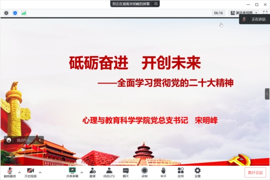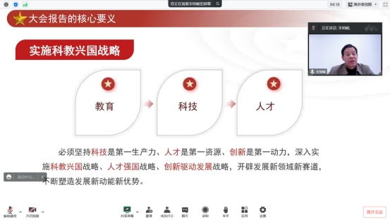 11月23日,公司深入学习贯彻党的二十大精神宣讲会在线上进行。公司党总支书记宋明峰作了首场宣讲报告,公司全体教职工和党员员工参加学习。