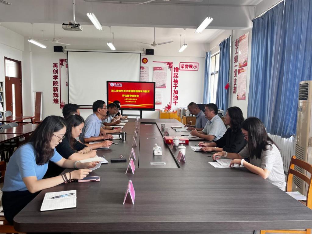 9月16日,公司党委在公司资料室,召开深入贯彻中央八项规定精神学习教育评估总结会,公司党委班子成员、支部书记和党员教师代表参加会议,公司党委委员、宣传部长闫昕带领评估督导组成员一行四人到会指导,评估总结座谈会由公司党委书记刘玉宝主持。
