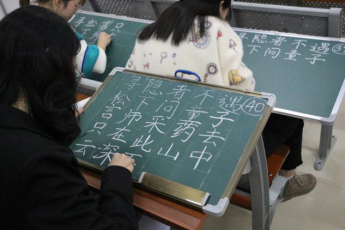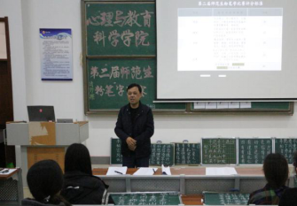 114日下午,第二届师范生粉笔字比赛于教师教育楼216室举行,省基层人才挂职研究人员黄昌伟、书法教师陈超、教师高建风、满建宇、陶宇、陈明担任评委,通过各班初赛推选出的70名优秀选手参加了本次比赛。