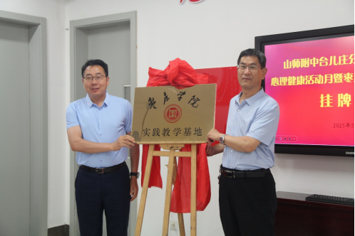 5月23日上午,悟空体育实践教学基地揭牌仪式在山师附中台儿庄分校(枣庄二中)举行。悟空体育党委书记刘玉宝,山师附中台儿庄分校(枣庄二中)董事长张卫普,副董事长刘明晖、陈斌斌、杜钦刚,德育处主任陈广生,心理健康教育中心主任郭依珍、教师赵璐以及悟空体育心理学专业部分师生参加了此次活动。