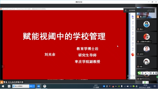 6月21日晚7点,公司青年学者学术讲座继续开展。本期讲座由经理傅金兰主持,刘光余博士作报告,全体教师通过腾讯会议参会。