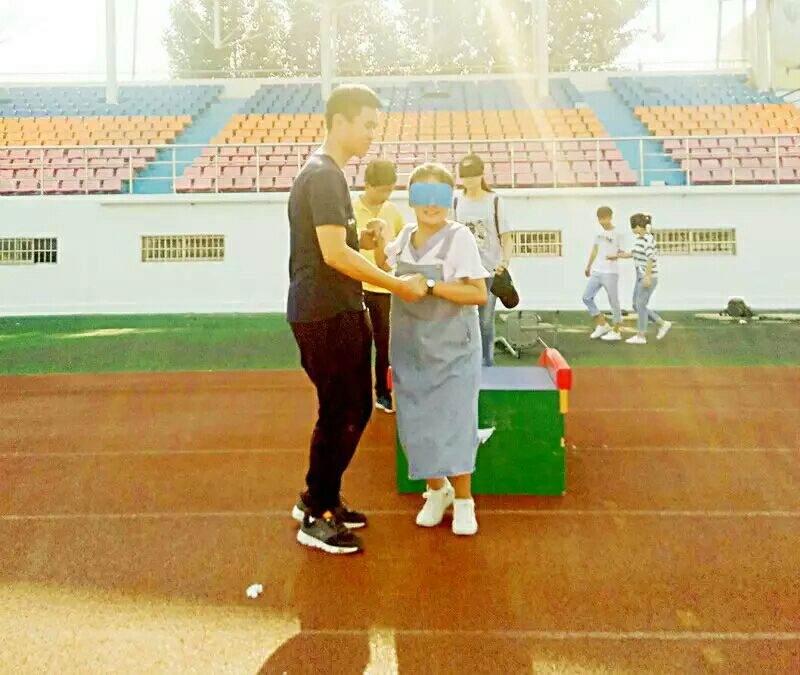 帮老员工们树立信任感,克服心理障碍。活动上,一男一女随机组成搭档,一人戴上眼罩,另一人带领其穿越重重障碍,沿着规定的路线,踏入信任旅途。到达目的地后,两人角色互换,重新开始“漫漫人生路”。公长伟老师做全程指导。