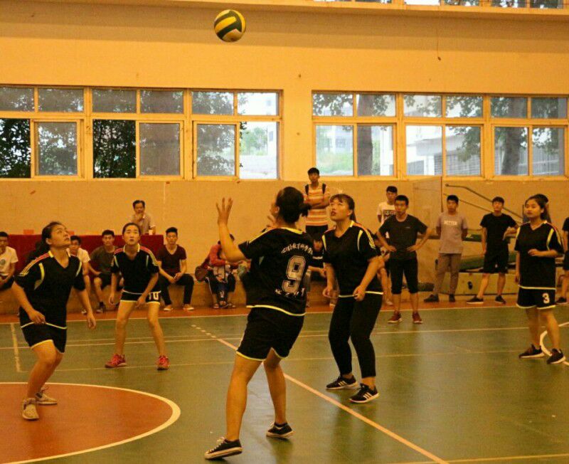 比赛开始之前,赛场上早已人头攒动,一场争夺战即将开始,各院观众聚集在赛场周围翘首以待这场精彩的赛事。正所谓"兵马未动,粮草先行",各院啦啦队很早就做好了准备,一时间在开场的气势上难分高下。一声哨响,各院代表队便迅速进入状态,各施绝技,比赛中,一个个精彩的扣球、拦网使比赛高潮迭起。各代表队