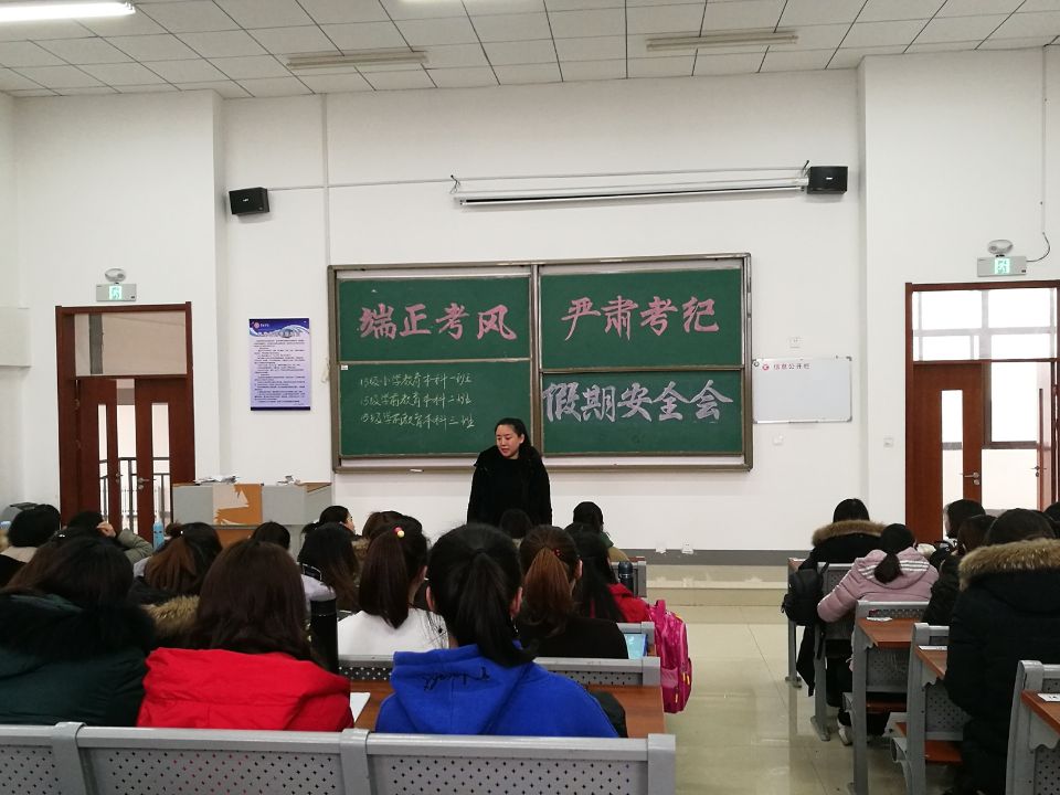 123日下午,公司在教师教育楼303室召开了期末员工工作部署暨寒假安全会议,公司党总支副书记宋明峰、团总支负责人、各班辅导员班主任参加会议。