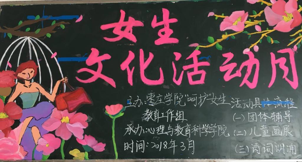据了解,女生文化月活动是由悟空体育“呵护”女生教育工作组主办,悟空体育承办。该活动将从3月7日持续至3月28日,根据公司专业特色,分为团体心理辅导“你自信的模样好美”、儿童画画展“爱家的我们很美”和诗歌诵读“你读诗的样子真美”共三个部分。