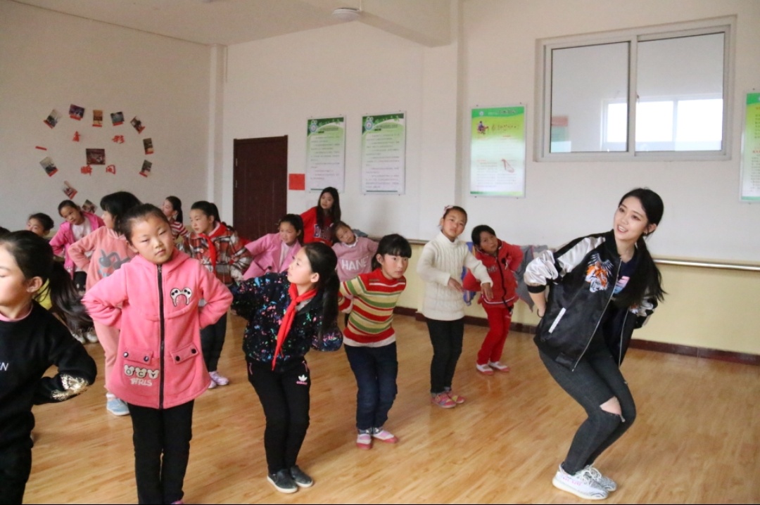 接着,文艺部志愿者为三年级的小员工上了一堂舞蹈课,伴随着《村居》这首欢快的音乐,孩子们认真学习着志愿者所教的每一个动作,逐渐地完成一支完整舞蹈的学习。