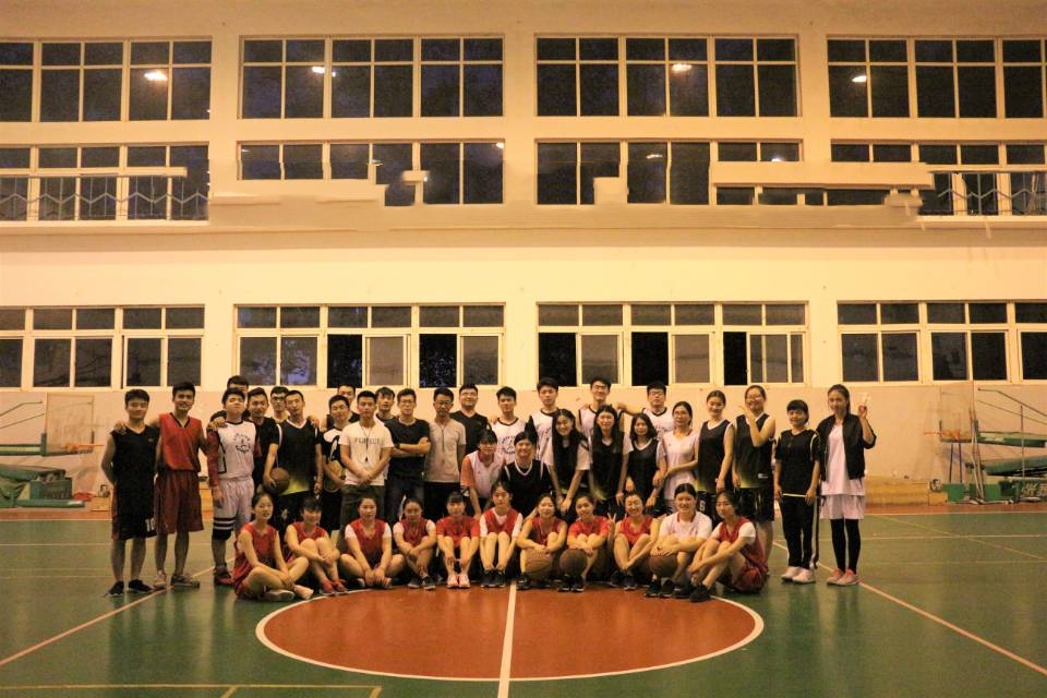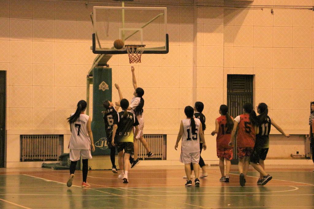 接着,篮球赛正式开始,大三大四篮球队员为一队,大二大一篮球队员为一队,首先是男篮对打,其次是女篮对打,时长各为一小时。高年级的实力果然不容小觑,在比赛过程中全情投入,以压倒势进球,赢得比赛的胜利,并且,每次进球都能引起阵阵欢呼和掌声,振奋人心。