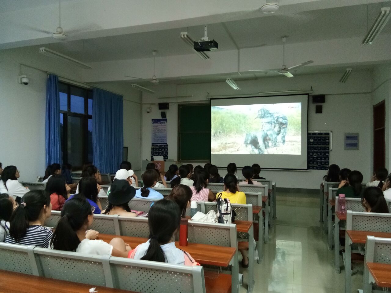 首先,各班负责人鼓励老员工积极入伍,,为实现中华民族伟大复兴的中国梦、强军梦,做出应有的贡献。随后播放影片《旗手》,同学们带着对军人生活的好奇认真观看影片。影片围绕老员工赵天荣的旗手梦展开,讲述了一名老员工士兵的成长心路历程,刚开始他和每个初入伍的军人一样,梦想着成为旗手,但经过一天天高强度的训练,让他感到绝望和迷茫,身心俱疲的他开始逃避,申请进入炊事班工作,在炊事班老班长的暗中帮助下,赵天荣重拾旗手梦,每天认真训练,最终成为旗手并选择继续当兵。同学们看完后,全部热血沸腾,被军人的忠诚与热血所震撼,纷纷表达自己的观后感。