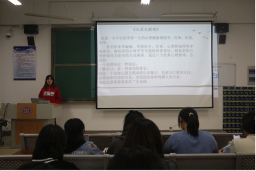 读书会分为心理健康类游戏和互动分享两个环节。游戏环节“我的五样”、“重要他人”以及“支持系统”使同学们关注内心,整合经历,通过分享打开心灵,调节情绪,认识自我,提高人际交往能力。活动中同学们带着问题去思考人生,交流思想,活跃了气氛,提高了团体凝聚力。
