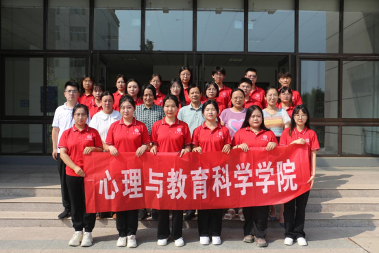 座谈会开始前,与会领导与支教员工在教师教育楼前合影留念。