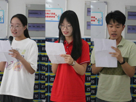 首先,上次实习支教员工代表刘丽橦和高培凯两位同学从日常教学、班级管理和生活三个方面分享了自己支教收获与体会。员工蓝云翔代表本次支教员工发言,表示将厚植家国情怀,树牢安全底线,弘扬志愿精神,全力以赴做好支教工作。