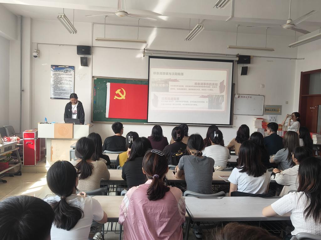 在活动的分享环节,党员员工代表以《铭史于心 砥砺笃行》为题,深情讲述了自己对 “九一八” 事变历史的学习感悟。同学们深刻认识到,正是无数先烈前赴后继、浴血奋战,才换来了今天的和平与繁荣;同学们还通过绘制板报的形式,将历史背景、英雄人物事迹及精神内涵精心呈现于版面之上,以图文并茂的方式传递红色记忆,让在场师生驻足观看,进一步加深对历史的理解与敬畏。