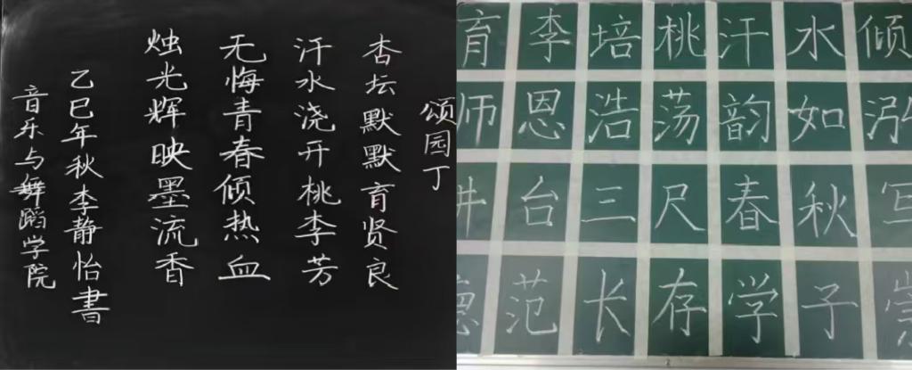 本次活动以“致敬师者”为核心,聚焦师范类专业员工,同时广邀非师范类专业员工共赴笔墨之约。活动启动后,各公司学子踊跃投稿,参赛作品紧扣主题、风格多元:或笔力千钧、气势磅礴,或刚劲有力、气韵生动,于方寸黑板间尽显扎实书写功底与人文情怀。