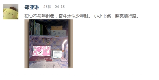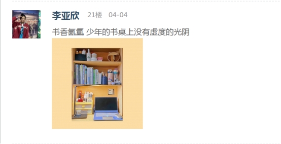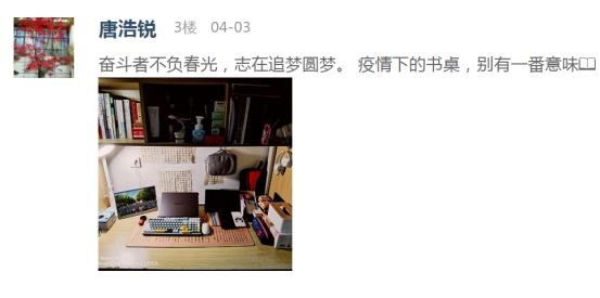 疫情防控期间,公司积极响应公司有关“停课不停学”的号召,开启“云课堂”在线授课模式,书桌已成为最忠实的陪伴者,也承载了一段静美时光。公司易班工作站在线大力宣传,本次“最美书桌”云之旅评比活动得到了公司同学们的积极响应。同学们通过易班APP扫码进入活动页面,阅读活动指引后在评论区展示自己书桌的照片并用文字讲述着书桌的故事。他们充分发挥自己的聪明才智和创造能力,用心“打扮”着属于自己的书桌。通过不同角度的拍摄,同学们将自己“书桌小天地”的精彩形象展现在我们眼前。在同学们上传的每一张照片之中,都展现出了同学们的品味喜好、生活习惯以及积极的学习态度,为在线教学的顺利开展奠定了良好的基础。最后,经过综合评选,十余名同学获得此次“最美书桌”活动的奖项。