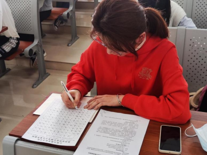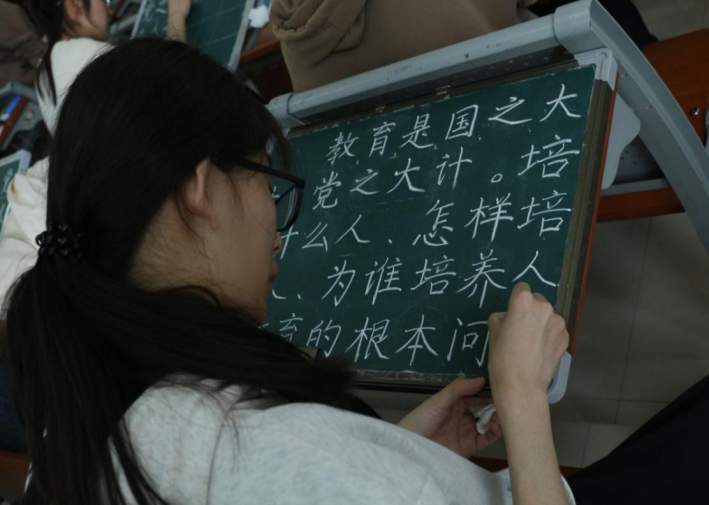 本次比赛书写内容现场指定,粉笔字和钢笔字比赛同时进行,在限定时间内完成书写内容。比赛过程中,各位选手认真书写,力求发挥自己的最佳水平。比赛结束后,评委老师对上交作品进行评审,从用笔、结构和章法三个方面严格审核评议、最终评选出一、二、三等奖。