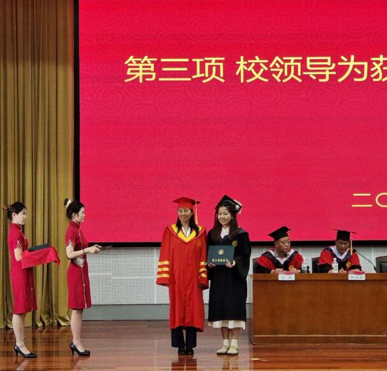 典礼前,毕业生一同观看了毕业纪念视频致敬大学时光。典礼在庄严的国歌声中拉开帷幕,家国情怀与青春热忱交融,开启这场关于成长与离别的仪式。经理傅金兰宣读了《关于授予2025届毕业生学士学位的决定》,褚夫敏依次为毕业生拨穗正冠、颁发学士学位证书,党委副书记姜周为2025届员工联络员代表颁发聘书。