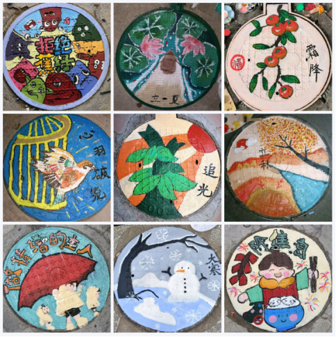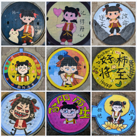 活动将象征勇敢与活力的哪吒形象与富含自然节律的二十四节气相结合,构思巧妙、寓意丰富。绘制过程中,同学们分工协作,细致描绘,既锻炼了艺术表达能力,也在创作中舒缓了心理压力、提升了情绪体验。绘制完成后,一个个原本平凡的井盖焕然一新,成为员工们传递情感、展现文化认同的重要载体。