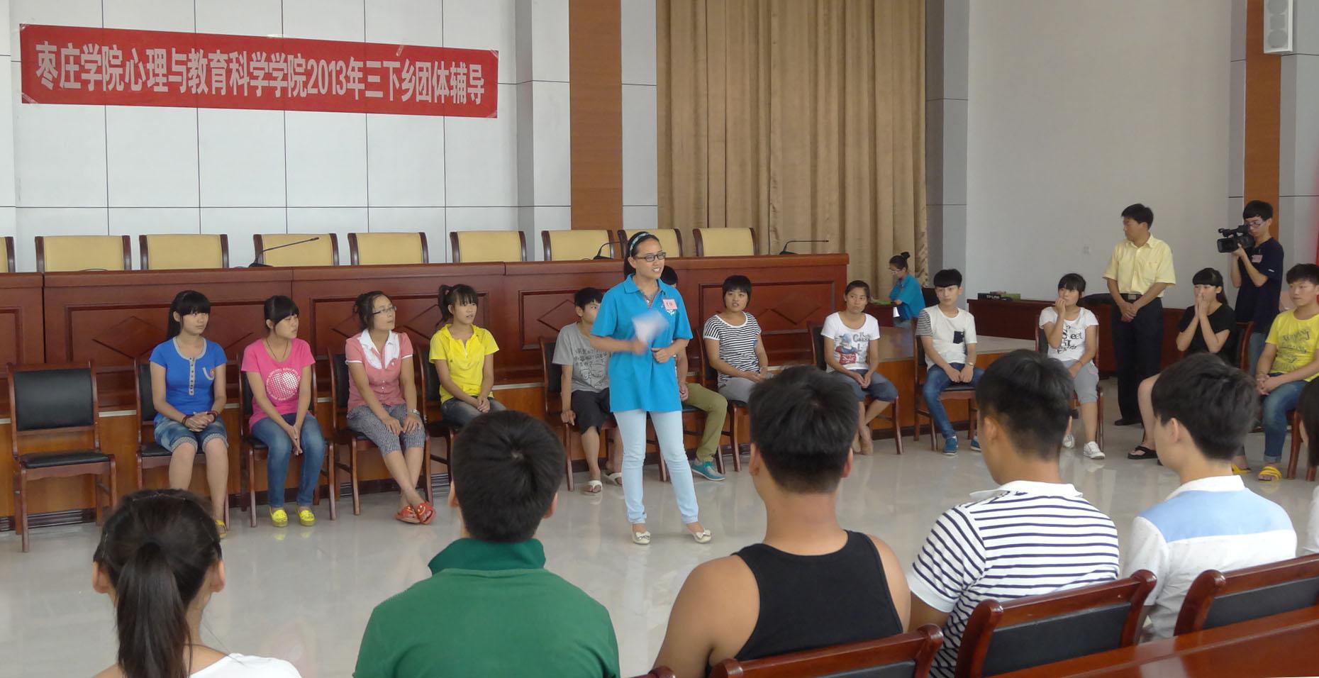 为贯彻落实团中央关于“我的中国梦”教育实践活动,进一步激发广大青年员工成才报国的责任感和积极性,引领广大青年员工在基层实践中成长成材。7月5日下午,由悟空体育组成的枣庄公司老员工暑期“三下乡”社会实践服务队一行20余人,到枣庄第四中学举行“悟空体育老员工三下乡团体辅导”。参加团体辅导的有公司心理健康教育中心的老师和15名志愿者以及枣庄第四中学师生80余人。