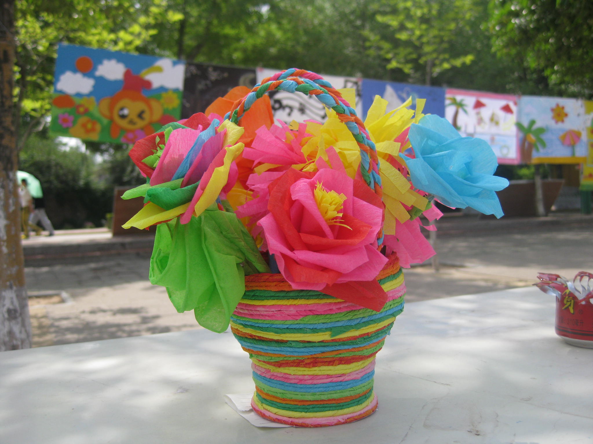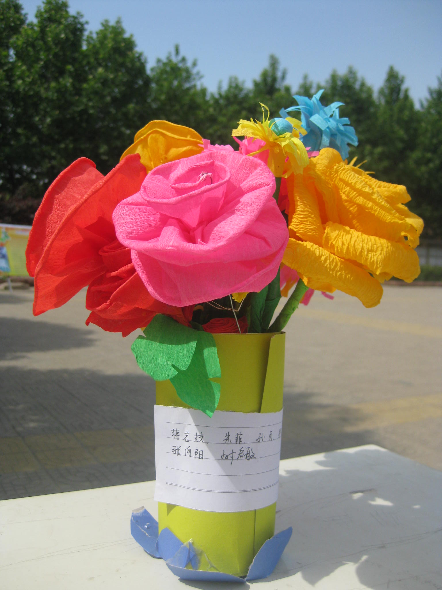 参展作品材料取自生活,一类是塑料瓶、纸杯、光盘、毛线等生活化用品,一类是吹塑纸、皱纹纸、衍纸、彩泥等专业化材料。作品灵感源自多层面的生活体验,制作手法多样,制作工艺中既采用了剪粘、雕刻等纸艺加工技术,又融合了泥塑、线织等立体制作技艺。主题鲜明而富有创造性,内容既包含生动有趣的卡通玩偶、形象逼真的大束玫瑰花,又涉及造型简单的易拉罐帆船、悬挂风铃、海底飞天图景。在展出过程中吸引不少师生驻足观看。其新颖的设计、精致的做工博得广大师生的赞赏。尤其是衍纸作品《一束馨香》更是赢得了大家的一致好评,引来不少师生求教。