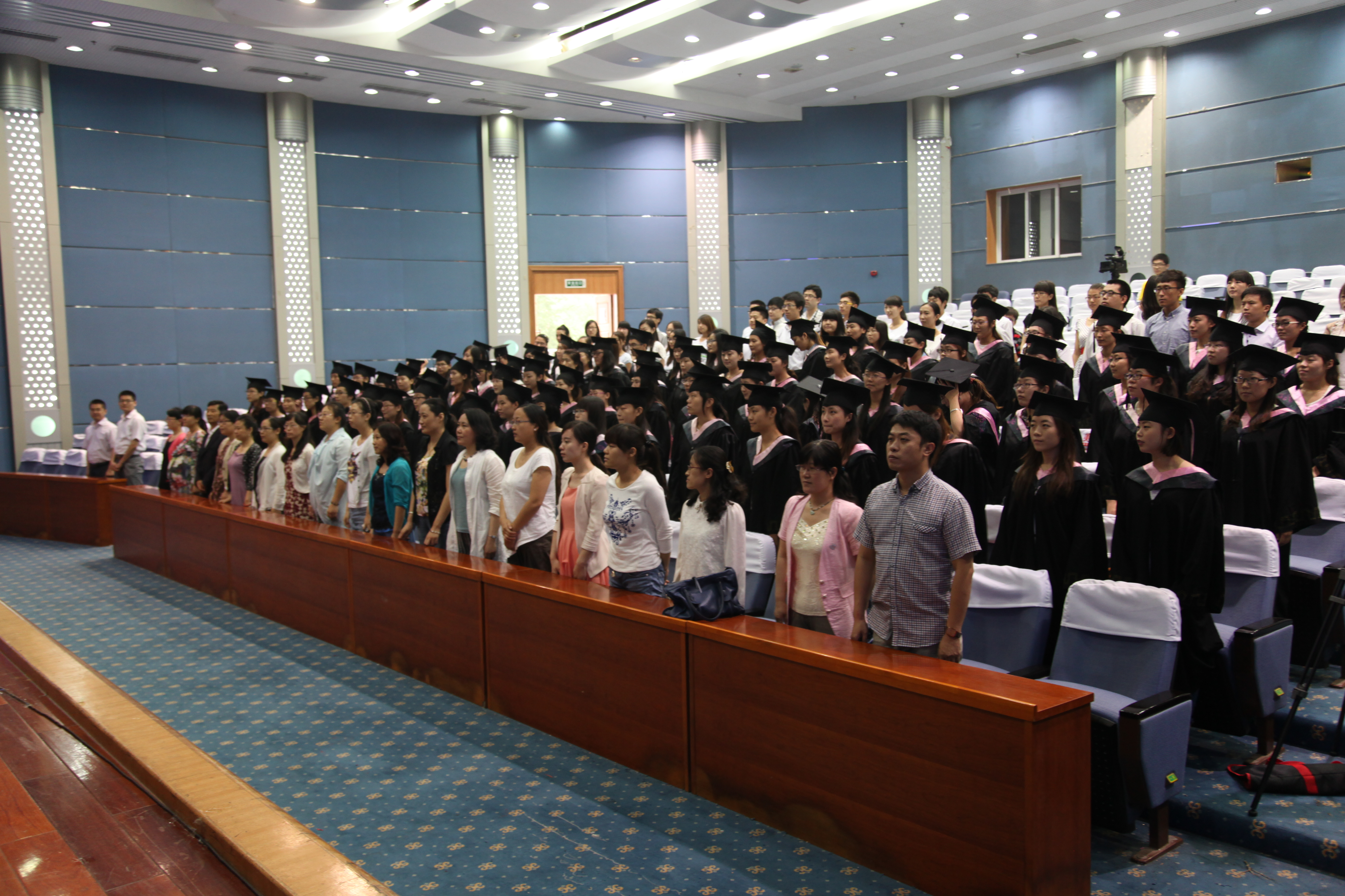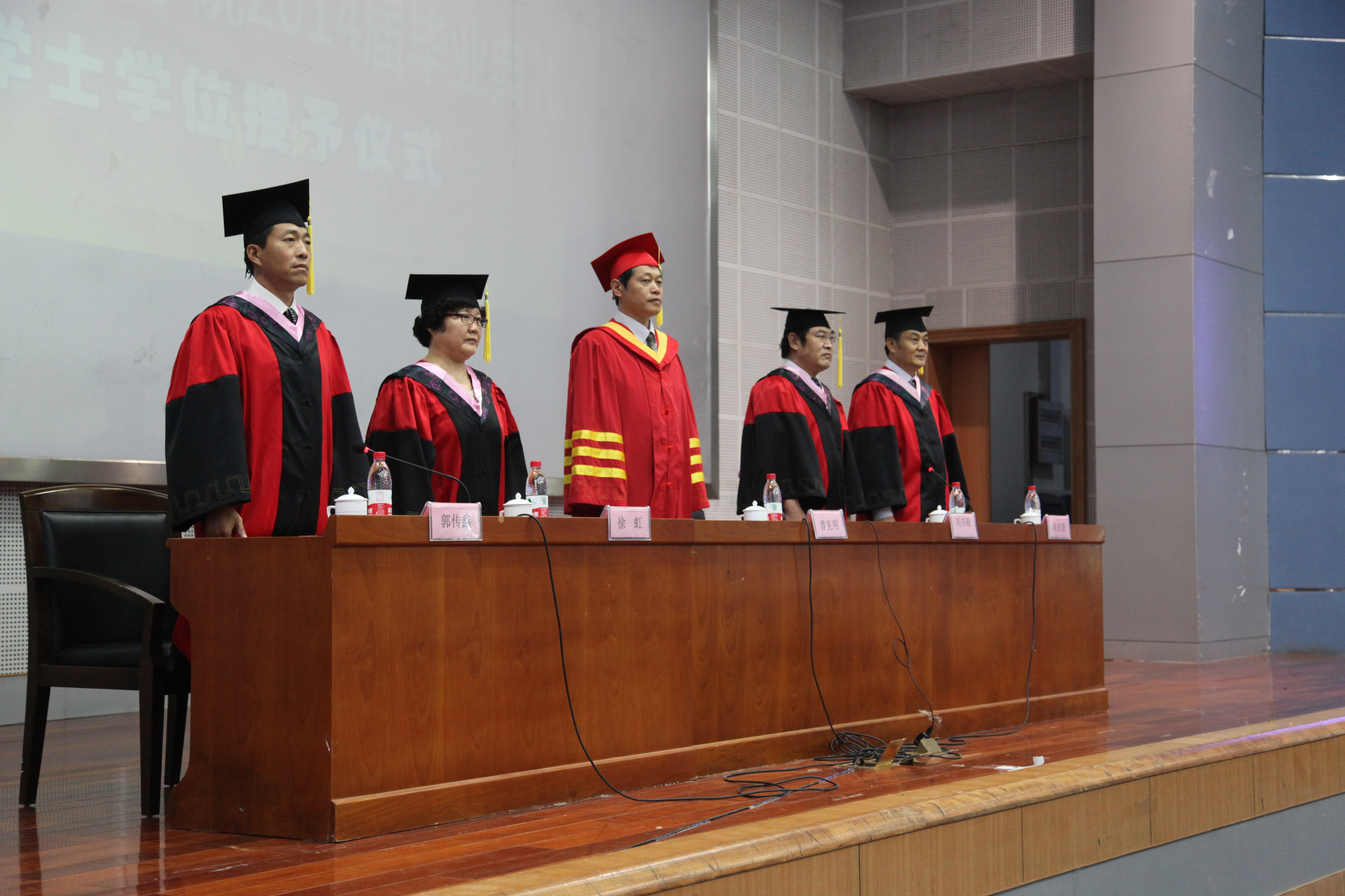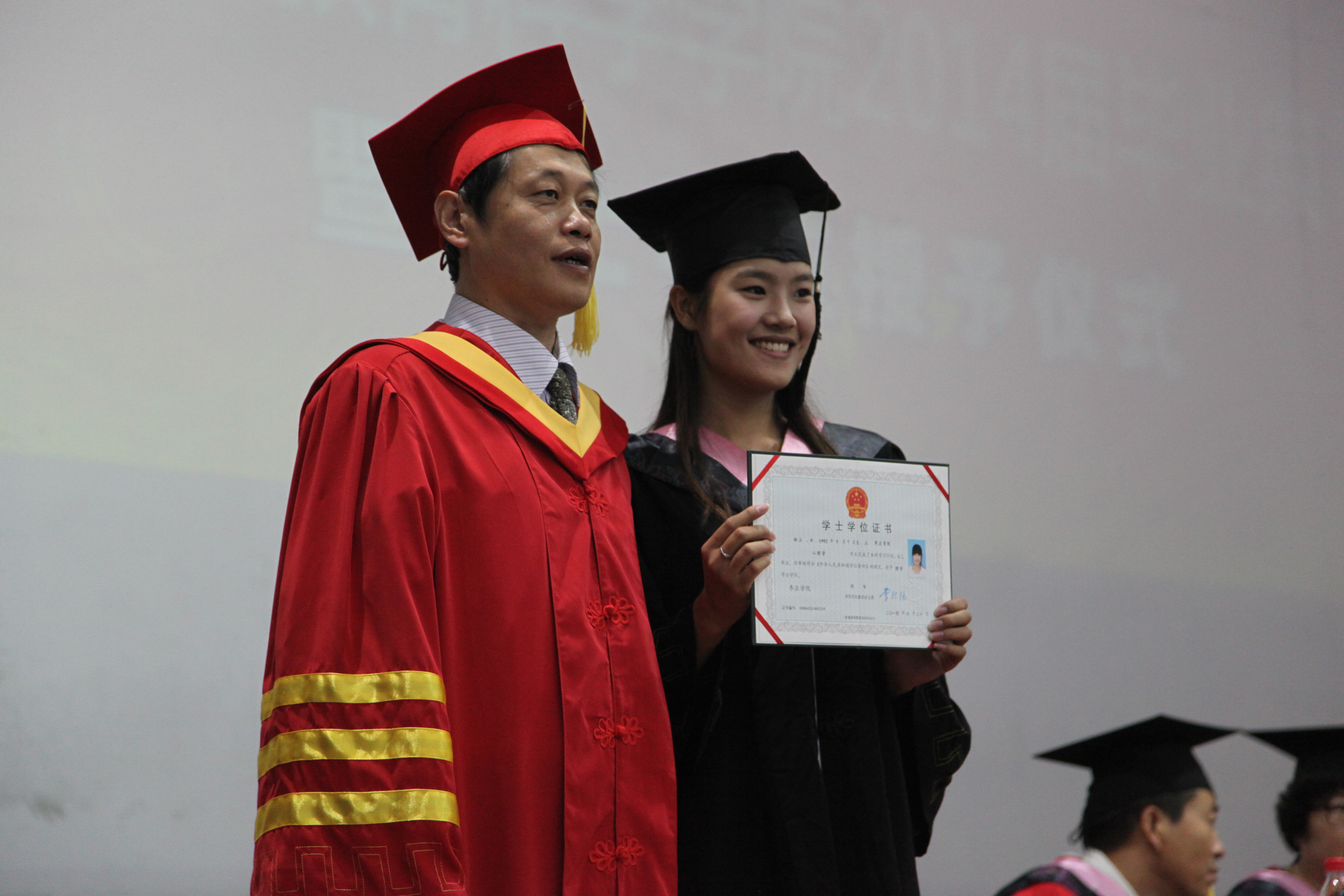 学士学位授予仪式在庄严的国歌声中式开始。 随后,在激扬欢快的《步步高》乐曲声和雷鸣般的掌声中,学士学位获得者依次登台,曾宪明副董事长为他们颁发学士学位证书,并为每位员工一一扶正流苏,合影留念。