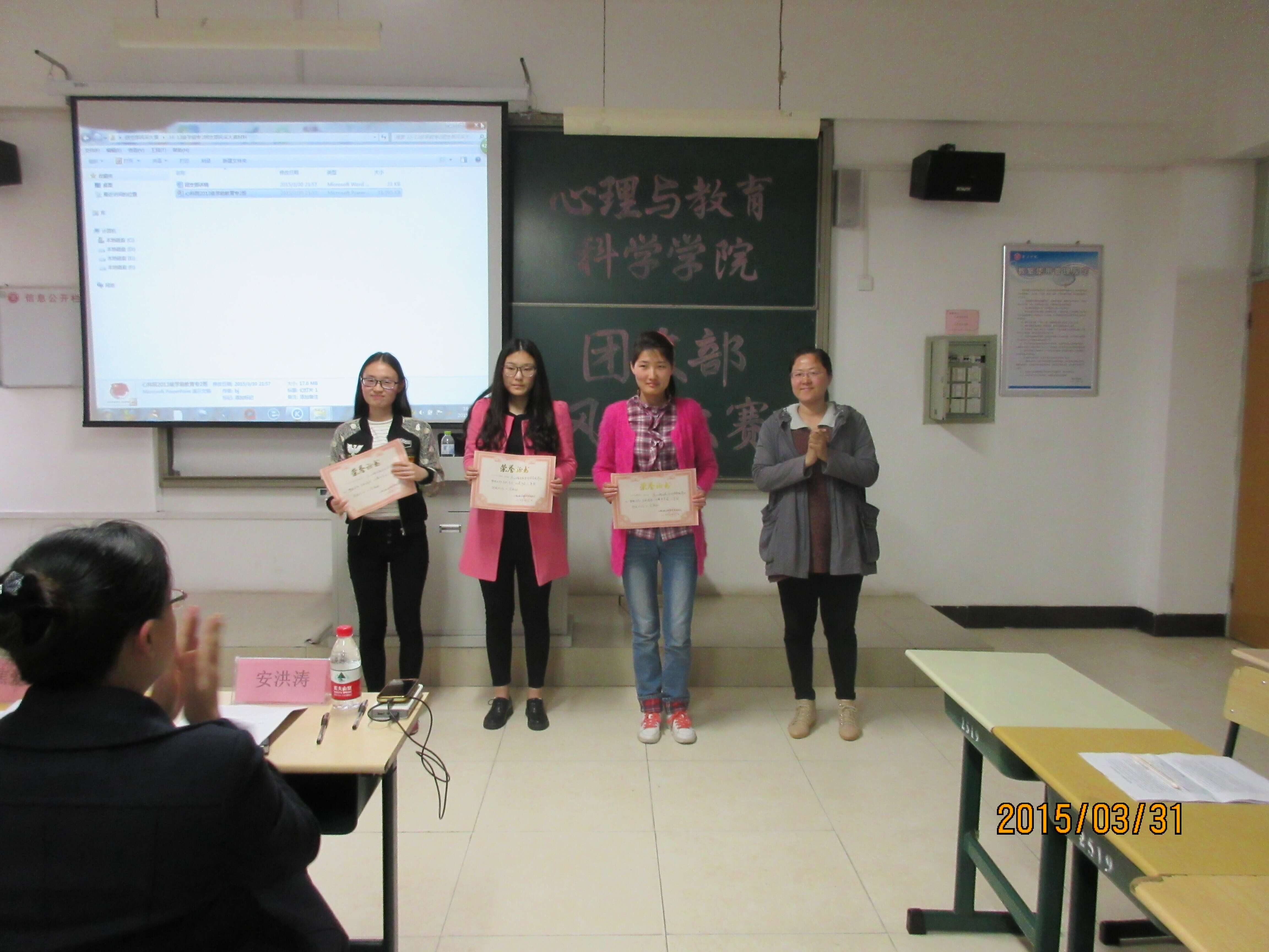 PPT设计创意新颖,获得了评委和观众的肯定。大赛最后,刘贵宝老师点评,同学们受益匪浅。获奖者:三等奖:14级学前本科班、14级学前专一班、12级教技本一班;二等奖:14级小教班、14级专升本一班;一等奖:13级学前本二。大赛在热烈的掌声中圆满结束。