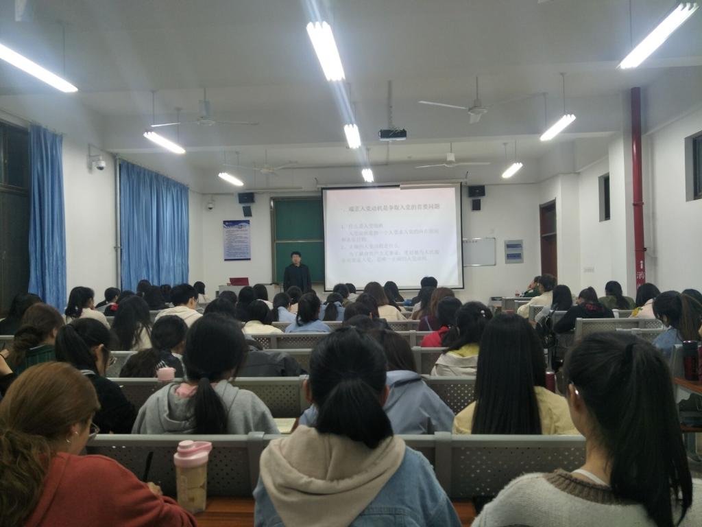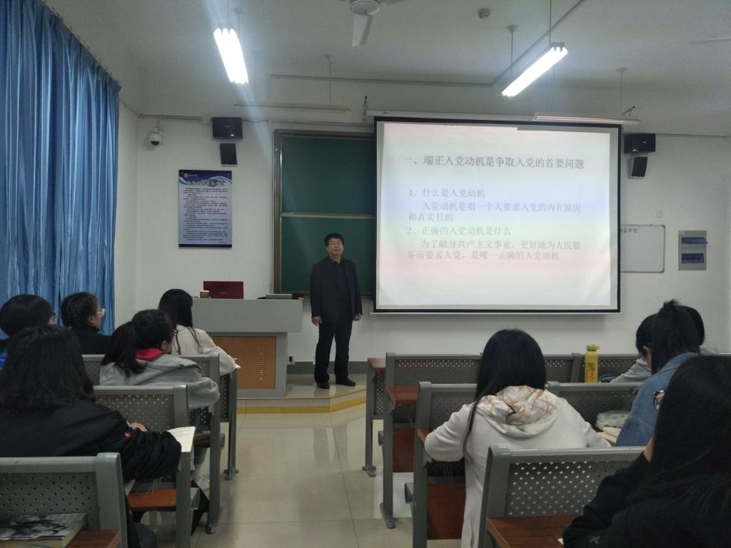 4月16日下午七点,公司党总支书记赵荣军在教师教育楼205教室对入党积极分子进行党课知识培训。