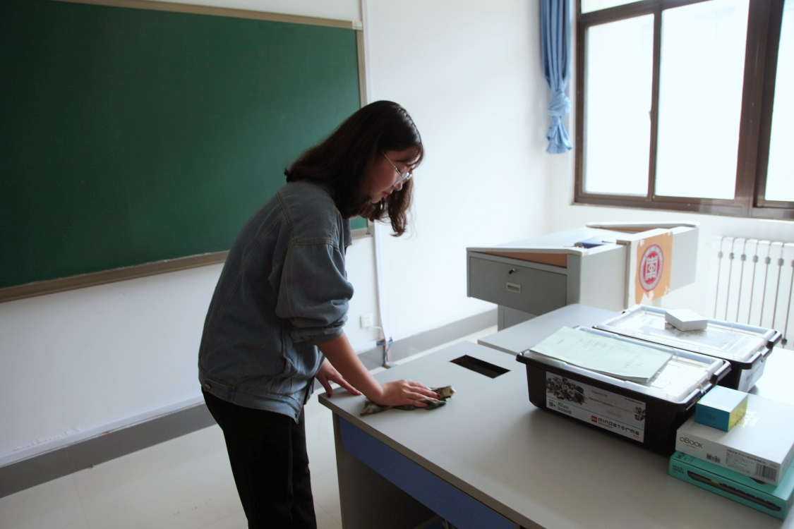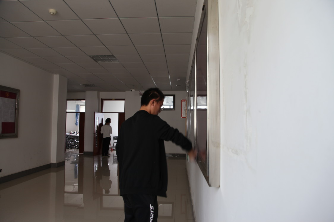 会后,全体党员及入党积极分子深入到公司的各个区域,开展了公司文化建设、环境布置、浮尘清理等工作。共分为了三个小组,分别负责教学区、实验区、会议室。全体党员和入党积极分子行动起来,将“不忘初心、牢记使命”主题教育理论学习知识落实到实际工作中,迎接教学评估工作专家莅临指导。