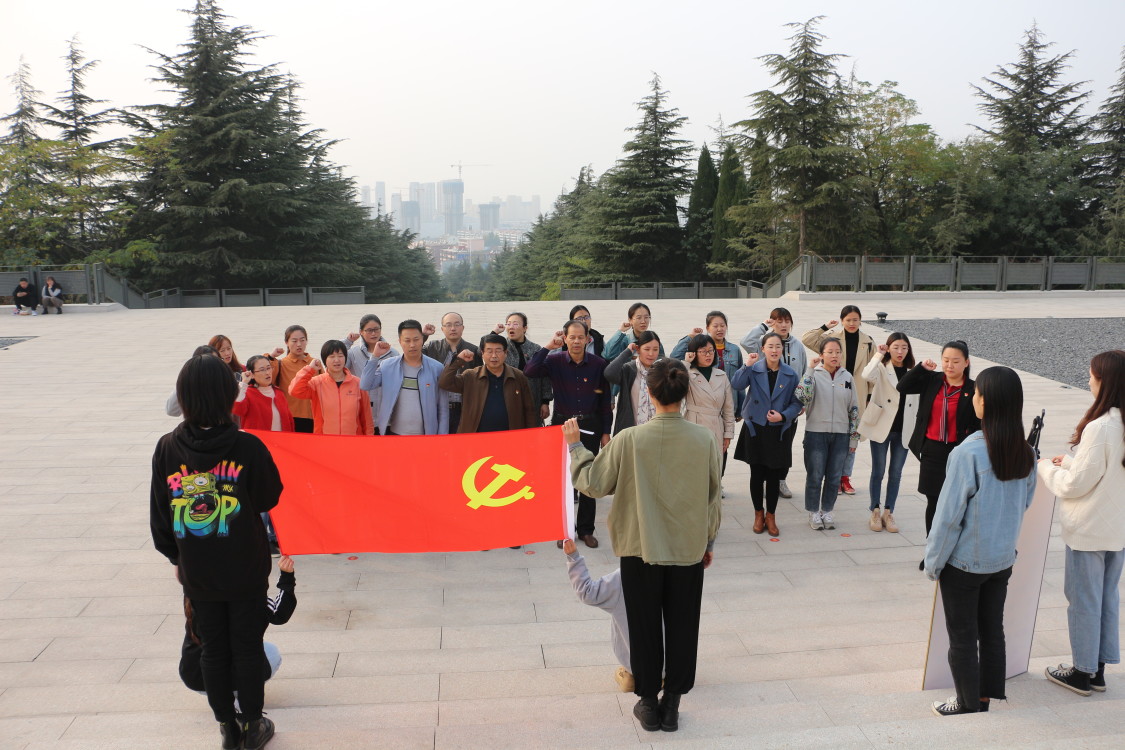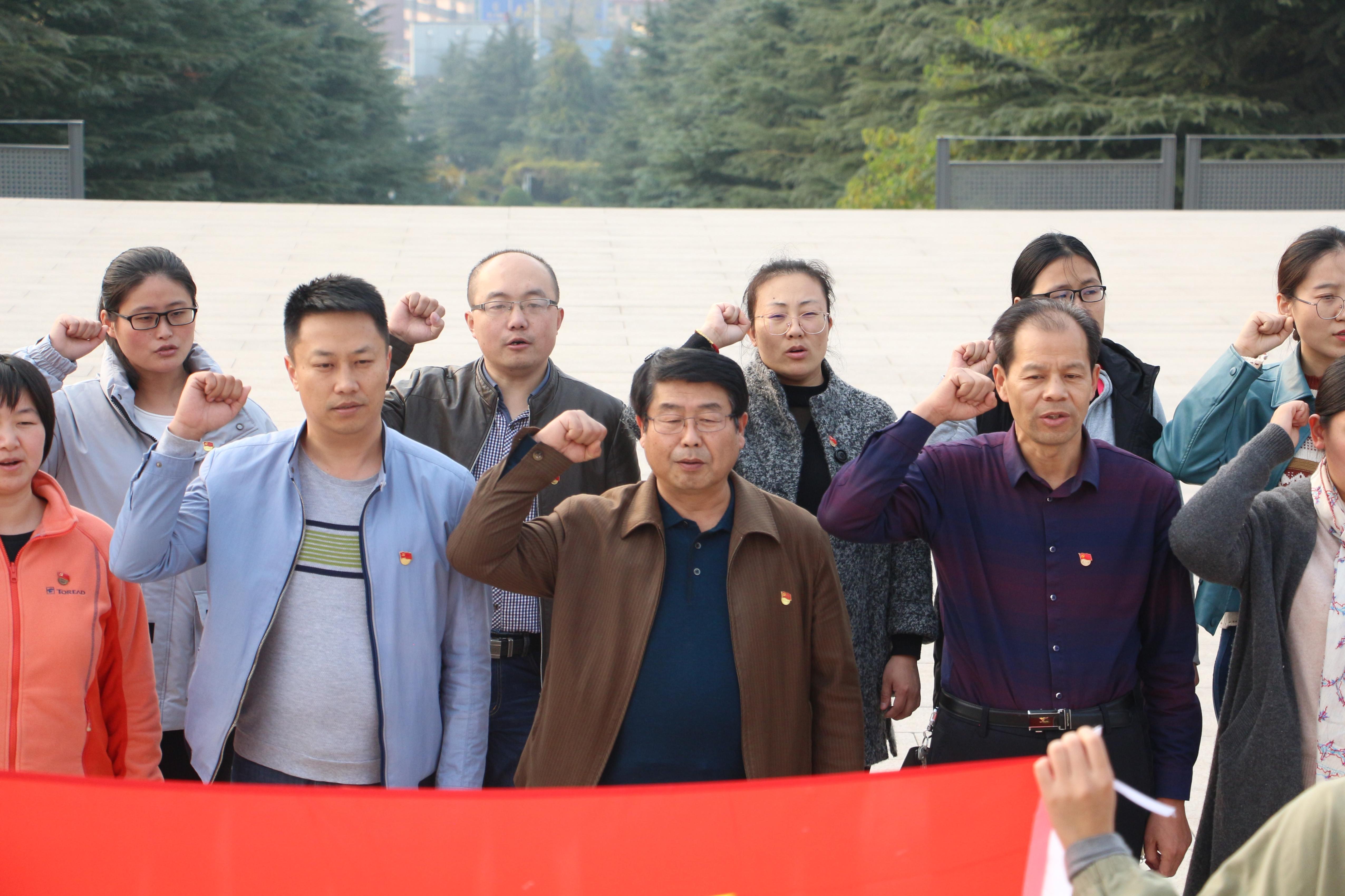 全体党员首先来到铁道游击队纪念碑,在肃穆庄严的纪念碑下重温入党誓词,同志们面向党旗庄严宣誓,追忆革命故事,缅怀革命先烈。