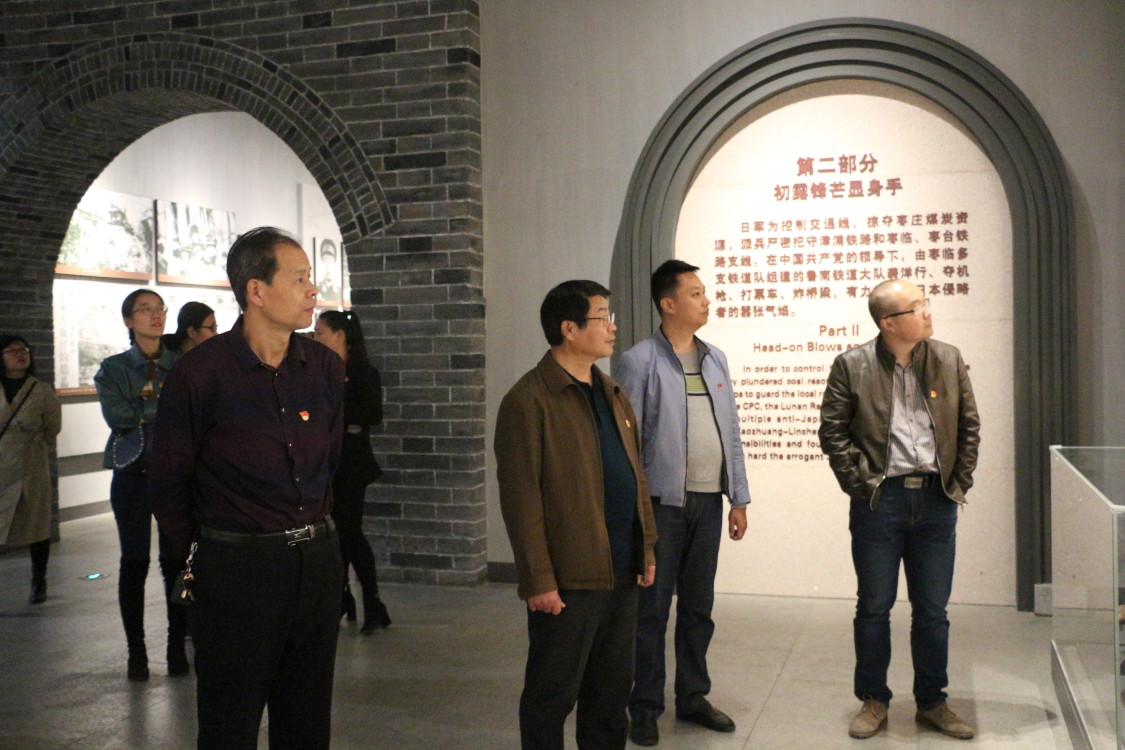 随后,全体党员同志进入铁道游击队纪念馆进行参观。同志们观看了大量珍贵的历史资料、影像图片和实物,全面了解了鲁南铁道游击队在抗日战争中的革命历程和英勇壮举,感受游击队队员的铁骨铮铮和革命豪情。