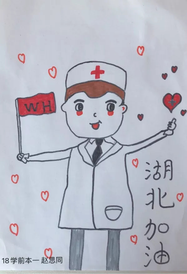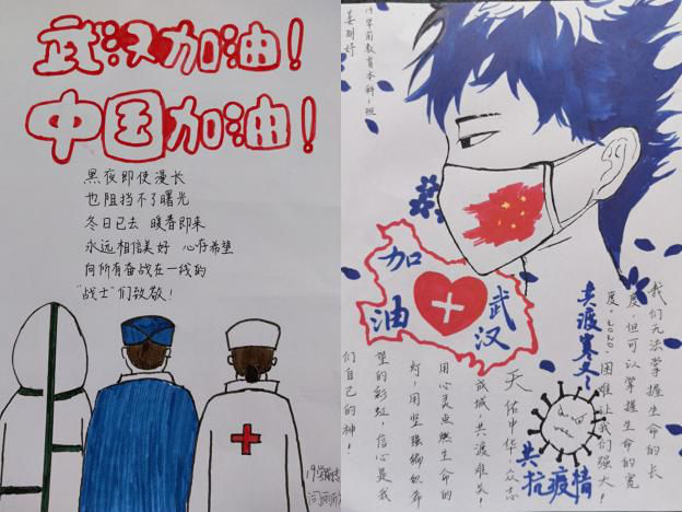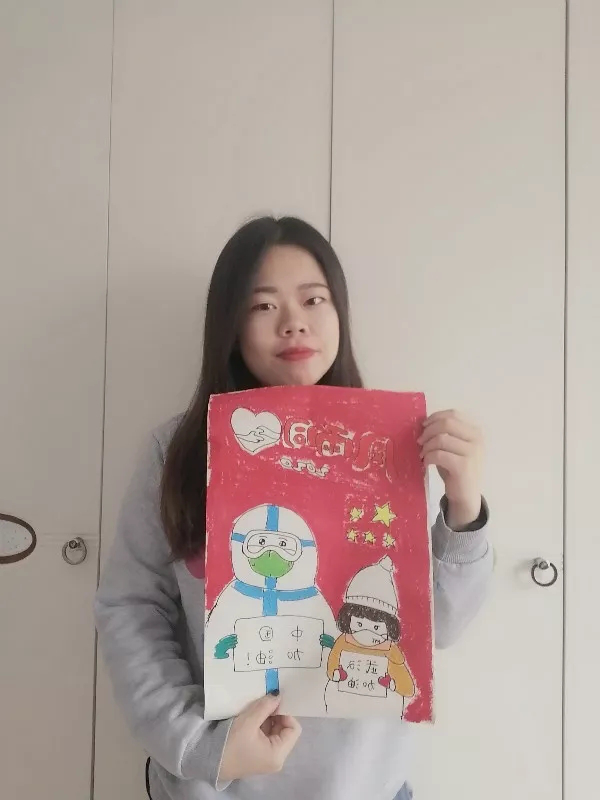 易班工作站负责人张丽嫱组织易班工作站携手员工会宣传部制作手绘作品,“携手战疫,易起加油”,为武汉加油。