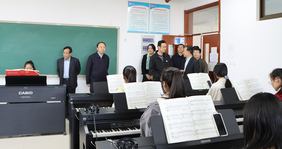 校领导一行先后参观了录播教室、书法技能实训室、电钢琴实训室、舞蹈技能实训室、微课拍摄制作实验室、实验管理室等实验室,对现场考察准备工作完成情况、专家集体考察项目等内容检查指导。