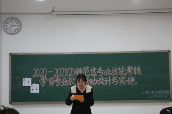 本次师范生专业技能期中考核包括钢笔字和学前教学活动设计与实施两项考核。按照各班级人数15%的比例随机抽取员工参加单项考核。