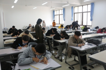 钢笔字考核于教师教育楼309室举行,考核对象为小学教育专业员工,考生现场随机抽取试题,本科一年级限时40分钟、本科二年级限时60分钟完成指定的书写内容。在整场考核中,每个考生都十分的专注与认真,尽力在作品中表现出自己的最高水平,现场书法氛围十分浓厚。