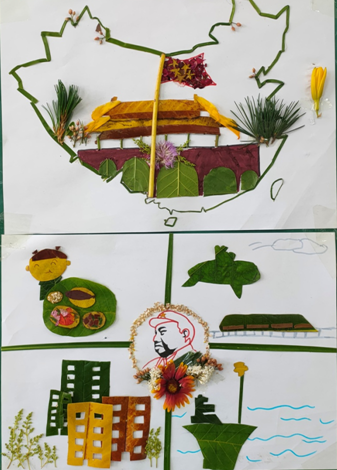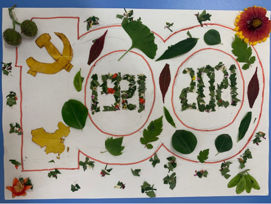 同学们将自然之美与手工制作相结合,用树叶画创作这种方式,庆祝中国共产党成立100周年,回顾中国共产党艰苦卓绝的创业历程,展现举世瞩目的伟大成就;弘扬时代主旋律,与党同向同行;坚定青年信仰,凝聚青春奋斗力量建党100周年献礼