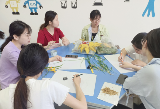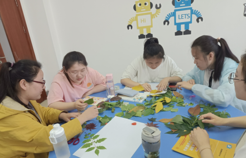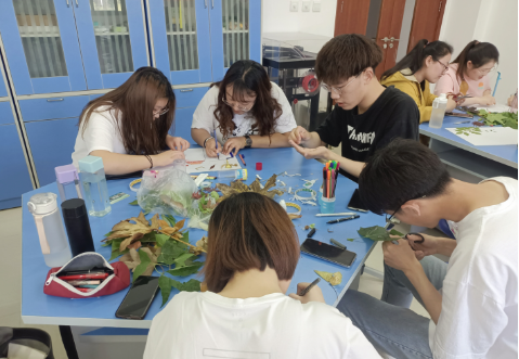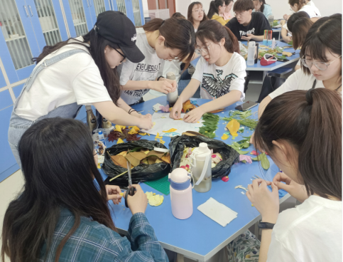 课堂上,一组组的同学正热火朝天地忙碌着。有的在小声讨论交流设计方案,有的在认真地在纸上打底稿,有的在或笨拙或熟练地用剪刀裁剪树叶,有的正在纸上小心翼翼地粘贴树叶,还有的在绞尽脑汁构思文本。这是2018级小学教育本科1班正在上《小学综合实践活动课程研究与设计》课。综合实践活动是基于实践的学习,关注员工现实和未来的需要和发展,在活动不断深化的过程中实现员工生动、活泼、主动地成长和发展。
