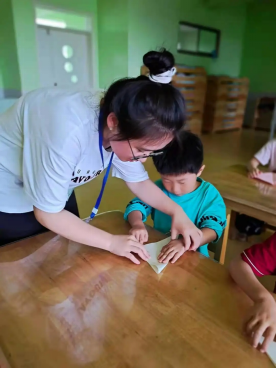 本次活动主要包括教小朋友折纸飞机、组装小红旗、做手工、唱儿歌、读绘本等。活动过程中,同学们认真投入,与小朋友们积极互动,在教会小朋友们的同时自己也收获的快乐和成就感。