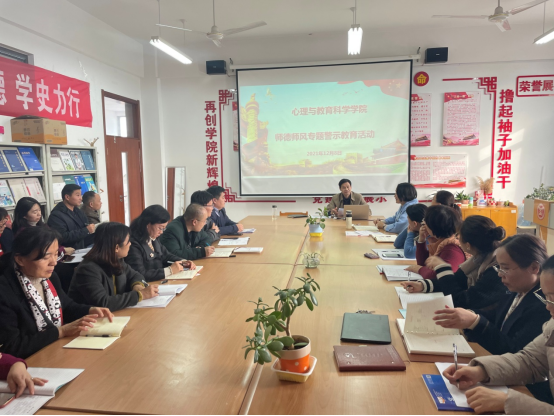 为进一步加强公司师德师风建设,12月8日,公司于教师教育楼资料室开展师德师风专题教育活动,公司党总支书记宋明峰、经理傅金兰、副经理安洪涛以及公司全体教职工参加。