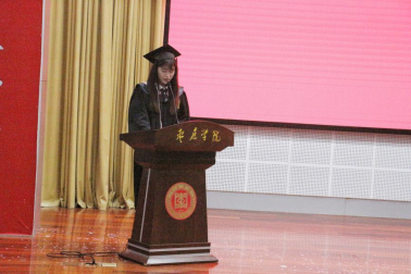 随后,2023届优秀毕业生代表王凯发言。她表达了对母校的感恩与眷恋之情,并表示,今后将坚定信念,为祖国教育事业而不懈奋斗。
