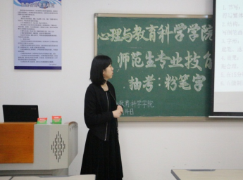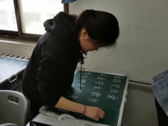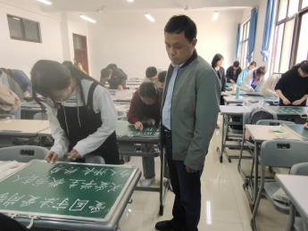 粉笔字考核在教师教育楼309室举行,考核对象为小学教育专业员工。此次考核要求每位同学在15分钟内,完成随机抽取到的考试内容,完成后由评委现场打分。同学们在黑板上认真地书写,一笔一划,刚劲有力,挥洒自如,全神贯注,力争做到最好。